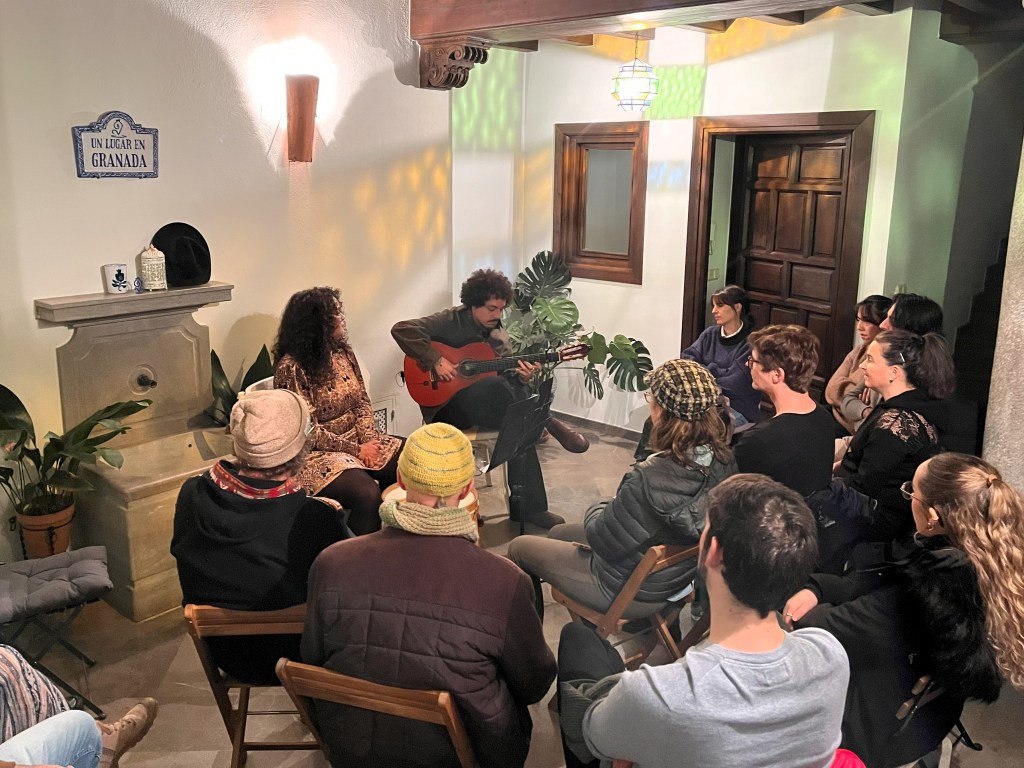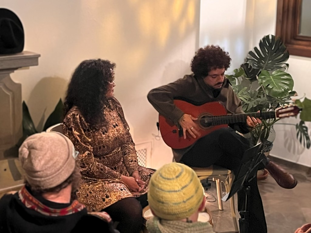 Antonio el Haro, tocaor de guitarra flamenca y de oud, y Julieta Paz, cantante y bailaora, dejaron en nuestro patio su «Flamenco criollo», mezcla de flamenco y folclore argentino.