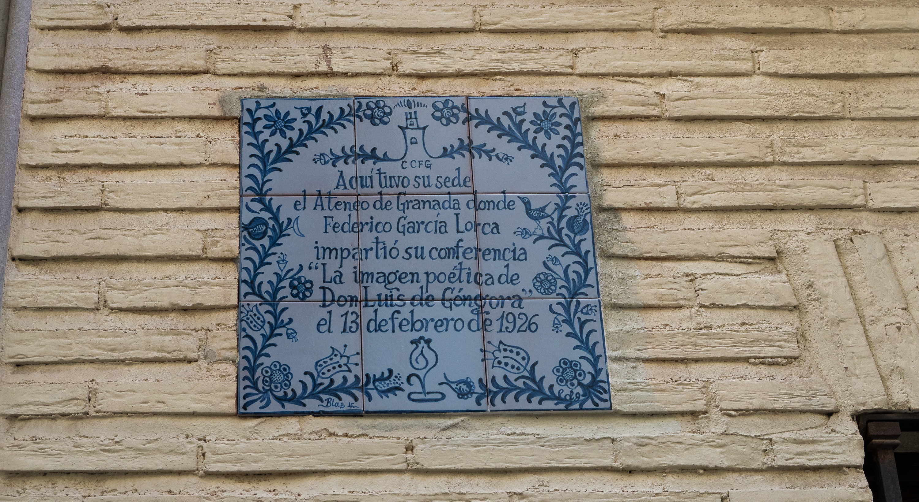Con motivo de este centenario, instalamos en la fachada una placa conmemorativa diseñada por el artista granadino EduArtGranada inspirada en las que aquel grupo de artistas luminosos de la edad de plata de la cultura granadina instalaron recordando a otros poetas. El descubrimiento de la placa lo hicimos junto al cantante Miguel Poveda, uno de los inspiradores de este homenaje, el propio EduArtGranada, y la alcaldesa de Granada, con la presencia de representantes del actual Ateneo y de autoridades de los pueblos lorquianos de la provincia.